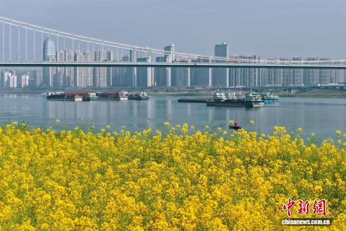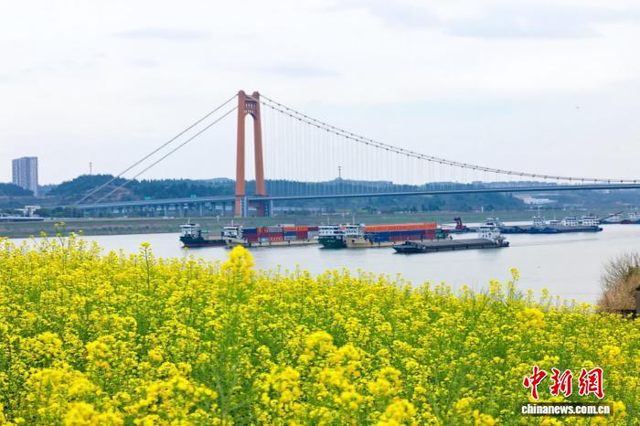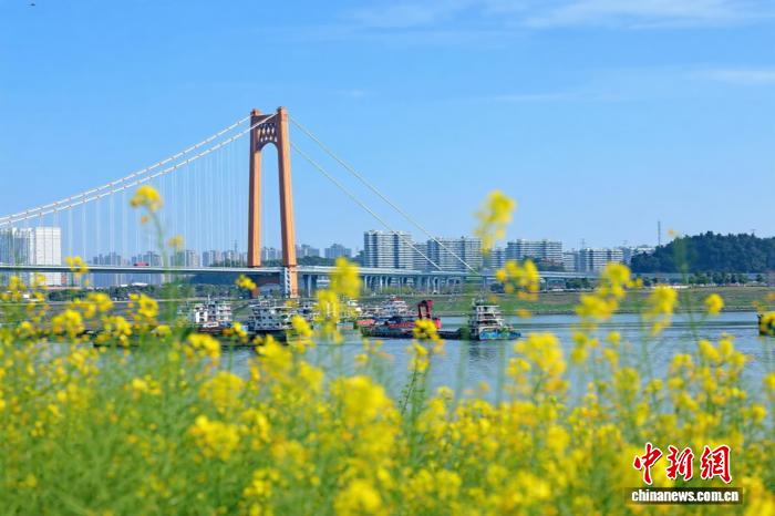 3月25日,湖北宜昌沿江二岸的油菜花田连接开放,金黄色的花海取少江碧波相应成趣,组成1幅靓丽的秋日绘卷。没有少市平易近、旅客信步正在宜昌市面军区江边,摄影纪念,感触感染秋日气呼呼息。图为金黄花海取橘色年夜桥相应成趣。董晓斌 摄